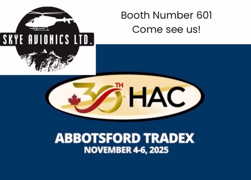Skye Avionics will be exhibiting at the HAC, located at the Abbotsford Tradex on November 4-6. Come by our booth to meet the team and learn about our manufacturing, avionics and design services. We will also have Northwall and Bonehead Helmets on display. We are booth number 601, hope to see you there!